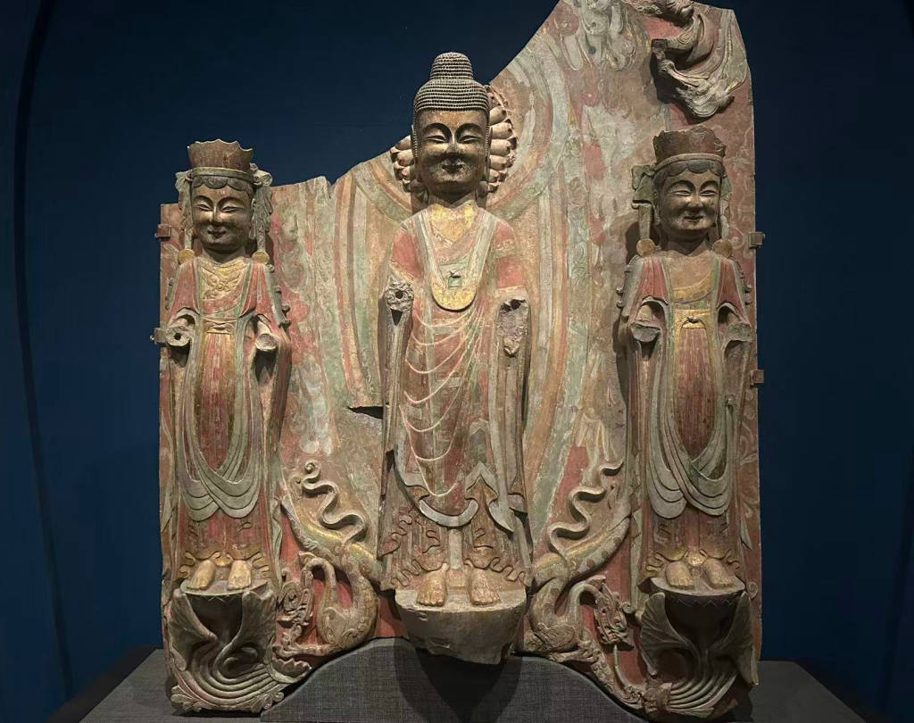 北齐贴金彩绘圆雕佛立像呈现薄衣贴体风格