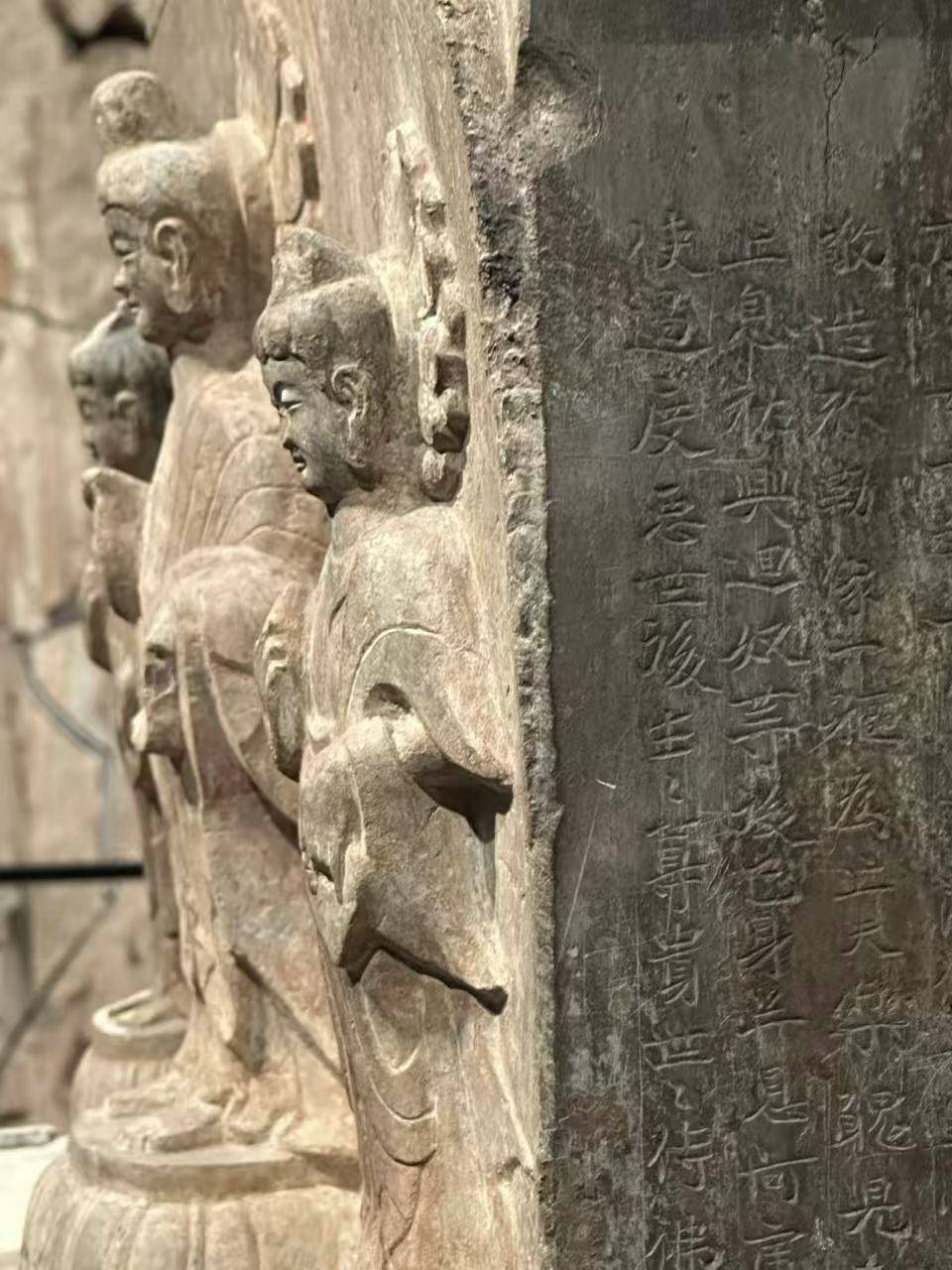 一千四百多年过去,石雕上的衣纹早已磨蚀,彩绘也在岁月中褪色,但那些面容依旧安静而从容。嘴角那一丝轻微的弧度,仿佛仍在延续北齐时代留下的表情。