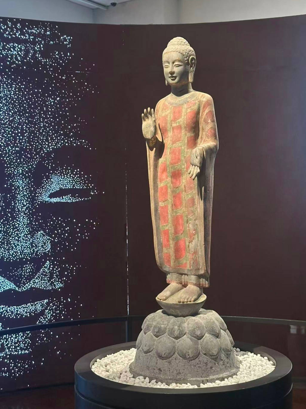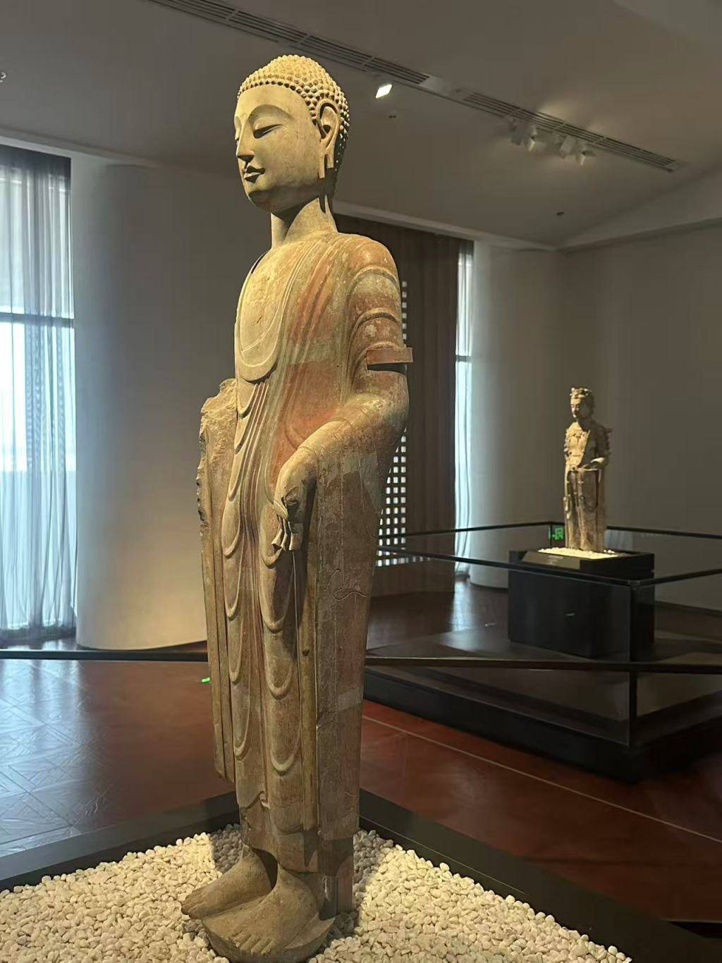 展厅中的北齐贴金彩绘石雕佛立像