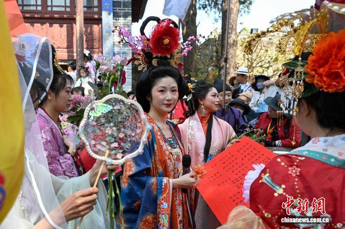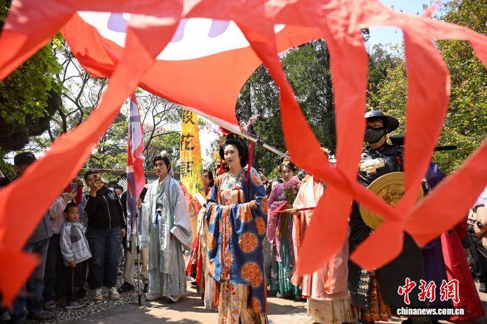 3月21日,云南昆明,游客观看汉服爱好者花朝节巡游。中新社记者 李嘉娴 摄