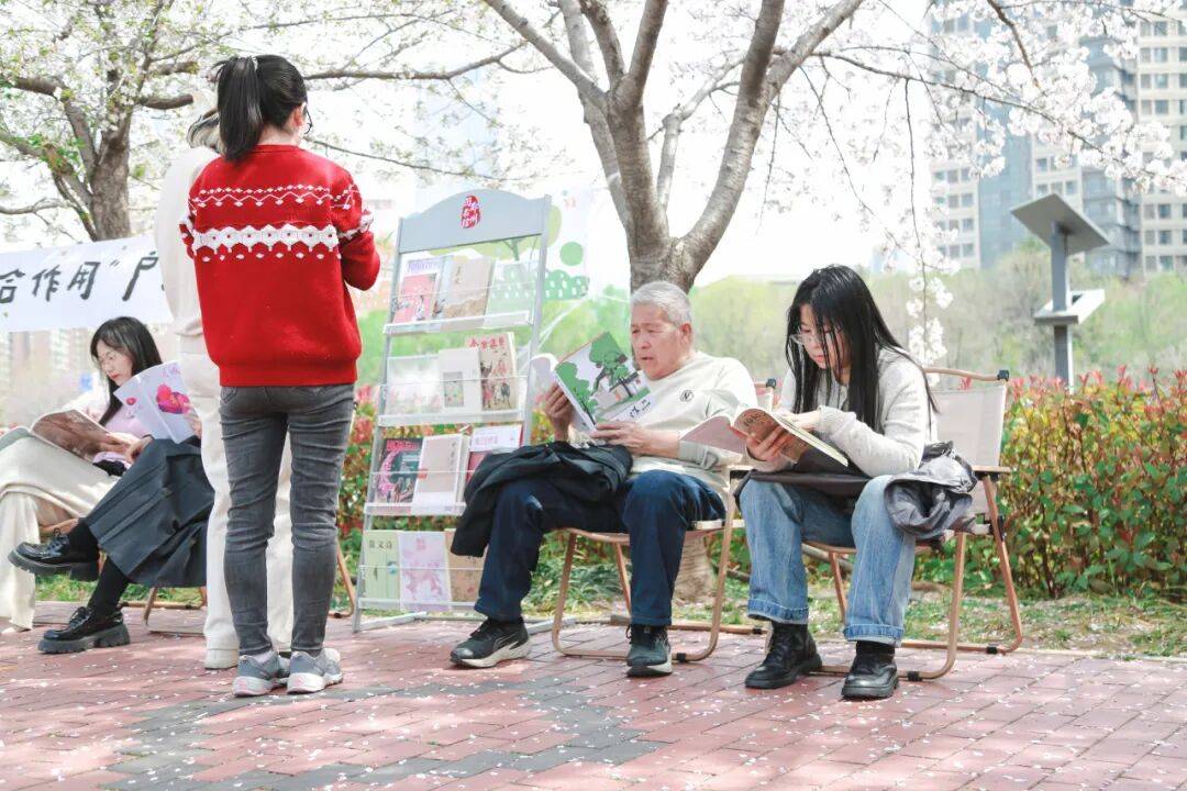 不少周边社区居民、午间休闲漫步的上班族,纷纷前来,循着花香与书香驻足,或静心翻阅书籍,或自制春日文创,在自然与文字的碰撞中,舒缓身心、感受春日独有的惬意时光。