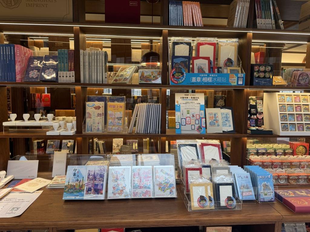 虹书舫的文创产品,也深耕于虹口区的文化传统。虹口礼物、海派文创、上海之印、虹书舫文创四大矩阵包括超千款特色文创产品。虹口礼物以虹口本土文化为底色,融入白玉兰广场、北外滩滨江等虹口地标元素;海派文创汇聚沪上优质设计师品牌,覆盖集章、祈福等五大系列;上海之印以16款上海地标章戳、10款世界名人章戳打造特色集章体验,串联城市地标与世界名人,解锁上海的城市脉络与人文底蕴;虹书舫主题文创推出6大类16种定制产品,3D城市建筑周边、世界名人书签等好物紧扣“文学邮轮+苏河水岸”定位,将苏河水岸风光、虹口人文底蕴与世界文学魅力相融,成为游客“带走的微度假记忆”。