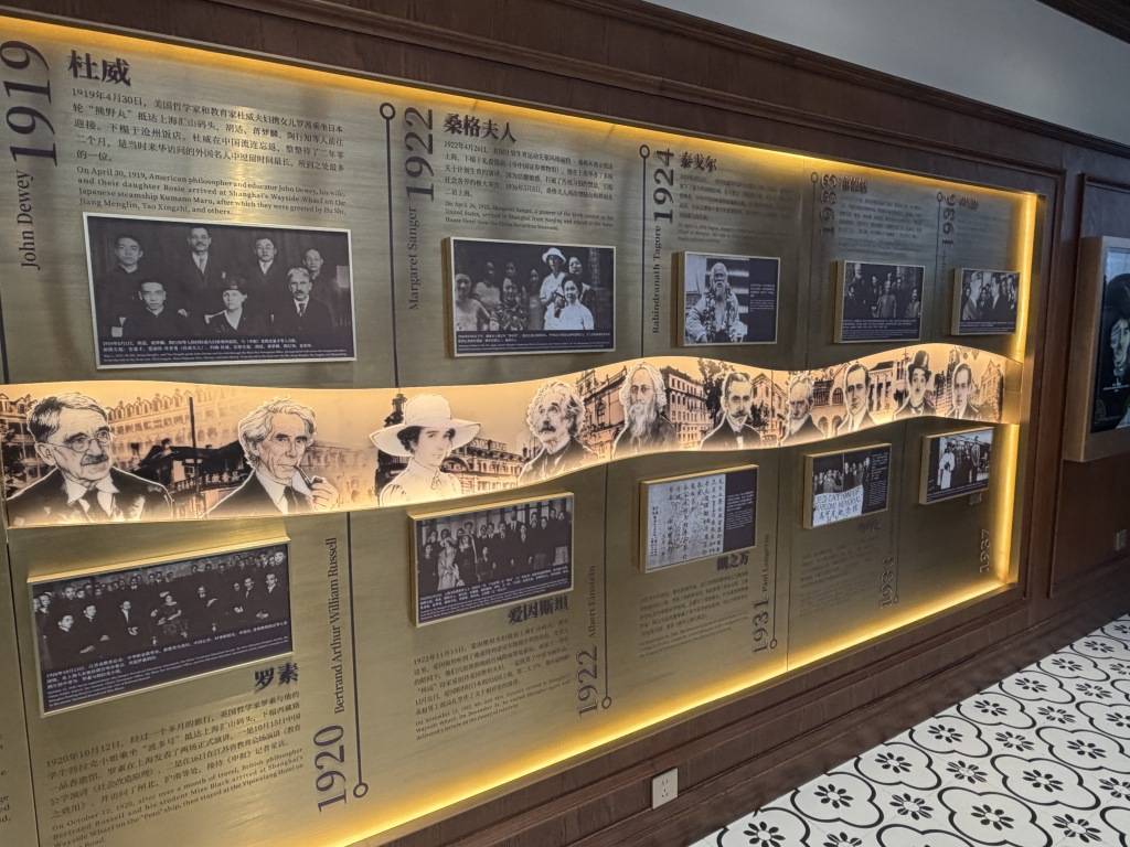 1919年4月30日,美国著名哲学家、教育家杜威在黄浦江码头上岸,仿佛拉开了世界文化名人来访的序幕。此后十余年间,罗素、爱因斯坦、泰戈尔、萧伯纳、卓别林等世界级名家相继访华,上海都是他们最重要的一站。