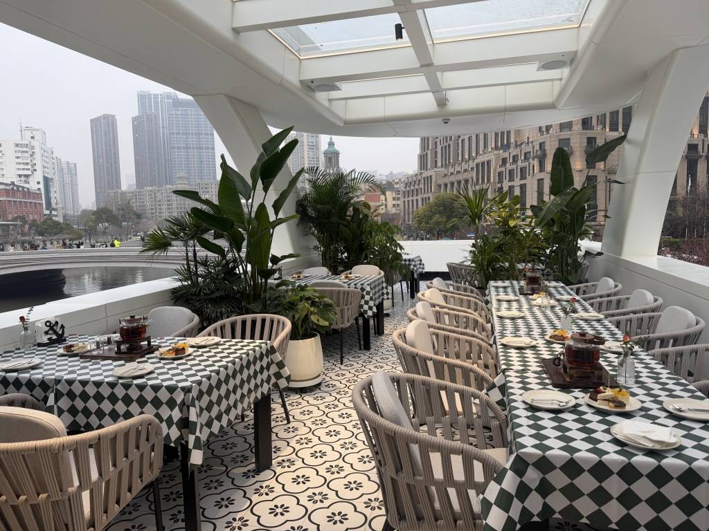 餐饮品牌“Lumina&Bridge光桥”以“可消费的文学场景+邮轮体验”为主题,推出外白渡桥型文创蛋糕、法式焦糖布蕾船等串联文学IP与邮轮场景两大核心元素的美食,实现“美食+文化+场景”的三重沉浸式体验。