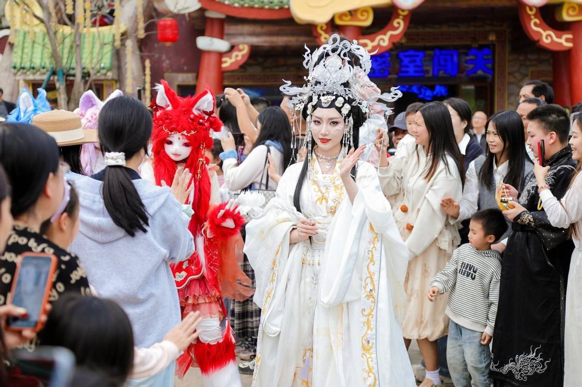 两大核心演艺之外,国风仙侠、黄金巨马、花魁及熊猫四大主题巡游轮番上阵,川剧变脸、民族歌舞等百场氛围演出接连上演,300余名NPC全天与游客沉浸式互动。