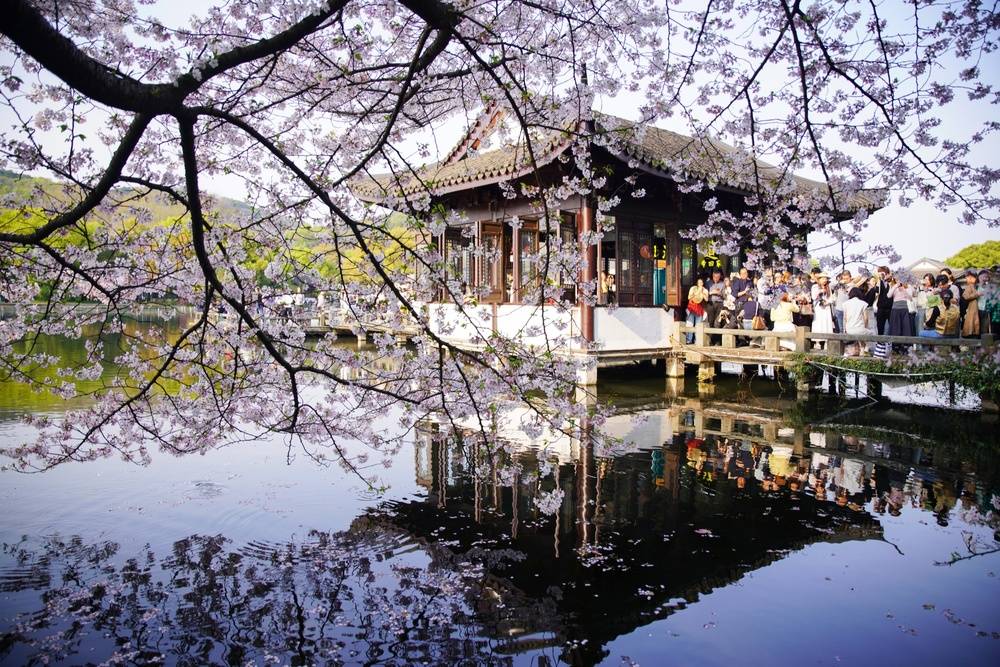 西湖景区曲院风荷樱花正盛(央广网记者 尚天宇 摄)
