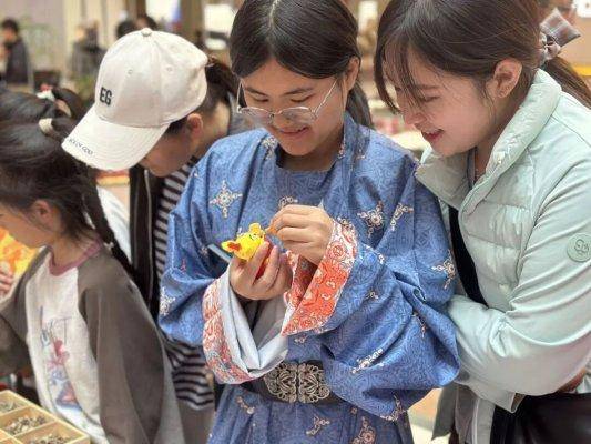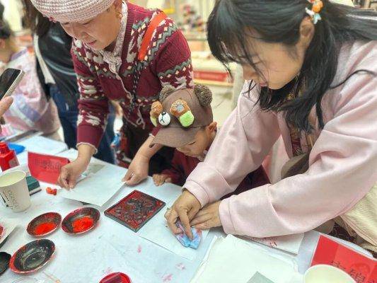 在非遗体验专区,多项独具特色的非遗项目集中亮相,让市民近距离感受非遗技艺的匠心与魅力。非遗拓印区域,市民在工作人员的指导下,轻敲慢拓,将古朴纹样清晰呈现,感受传统拓印技艺的独特韵味;非遗面塑摊位前,非遗传承人巧手翻飞,一块块普通的面团瞬间化作栩栩如生的人物、灵动可爱的小动物,引得小朋友们阵阵惊叹,纷纷动手尝试,体验指尖上的非遗乐趣;非遗漆扇制作环节,大家提笔绘扇,将春日美景与美好祝愿绘于扇面,一把把独具匠心的漆扇,承载着传统文化与春日温情;非遗剪纸体验中,剪刀游走于红纸之间,方寸之间剪出吉祥图案,传承千年的剪纸技艺让市民赞叹不已。
