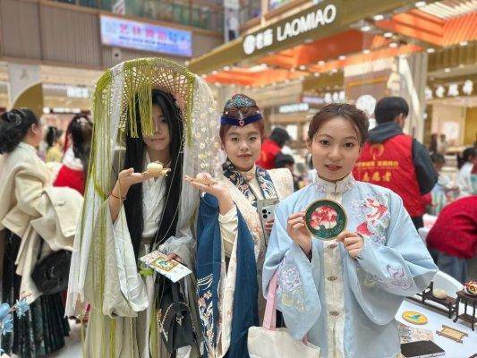 活动现场,传统与雅致交融,处处洋溢着浓厚的节日氛围。不少市民身着飘逸汉服,衣袂翩翩,漫步于活动现场,沉浸式感受传统服饰之美,成为游园会上一道靓丽的风景线,让大家仿佛穿越千年,邂逅宋韵风雅。为让市民全方位体验传统文化魅力,本次游园会精心设置了宋锦福卡打卡、非遗技艺体验、市民摊位互动三大板块,多项特色活动轮番亮相,兼顾趣味性与文化性,覆盖全年龄段市民需求。