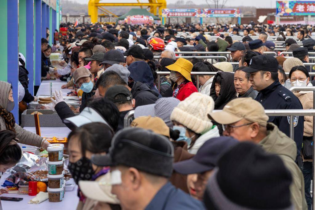 人们在喊江节现场排队品尝美食。 新华社记者 张涛 摄