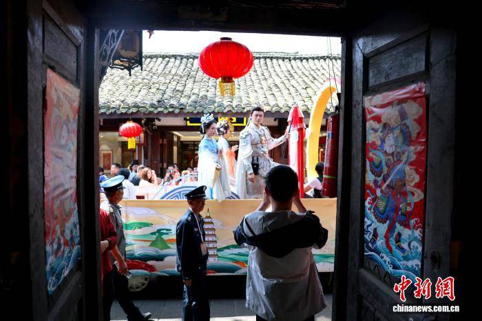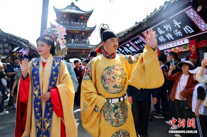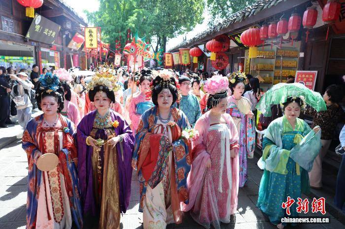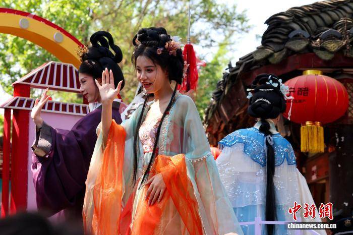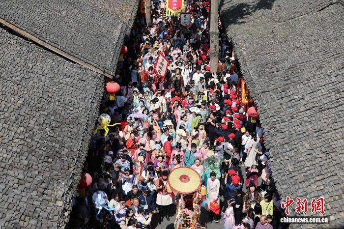 4月18日,以“袍行阆苑·梦回千年”为主题的2026阆中汉服纪活动在四川省南充市阆中古城上演,上千名汉服爱好者盛装参与巡游,霓裳华服与青瓦古巷相映成趣。十二花神会、武将仪仗队、国色阆中巡游队三大主题花车鱼贯登场,组成绵延长龙穿行于古城之间,为游客献上一场国风盛宴。中新社记者 张浪 摄