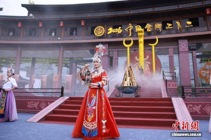 4月18日,中国畲乡“三月三”活动启动暨“公主巡游”民俗风情沉浸式展演在浙江省丽水市景宁畲族自治县举行,集中展现畲族民俗文化,让市民游客沉浸式感受畲乡的独特魅力。图为“畲族公主”举起火种。中新社记者 孙杨洋 摄