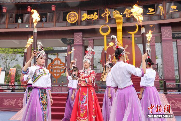 4月18日,中国畲乡“三月三”活动启动暨“公主巡游”民俗风情沉浸式展演在浙江省丽水市景宁畲族自治县举行,集中展现畲族民俗文化,让市民游客沉浸式感受畲乡的独特魅力。图为表演者燃起火把。中新社记者 傅飞扬 摄