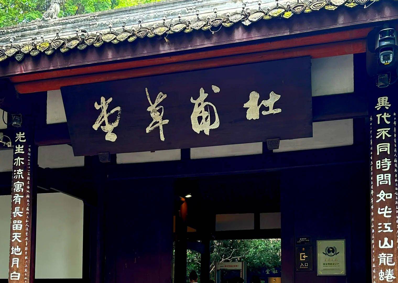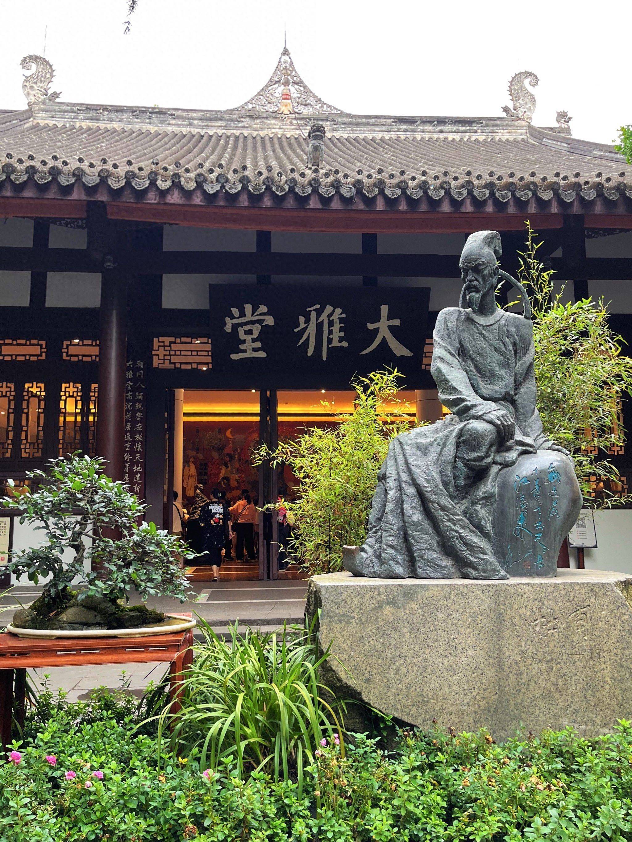 成都杜甫草堂是诗圣杜甫流寓成都时的故居。公元759年冬天,杜甫为避安史之乱,带着家人来到成都,第二年春天,在浣花溪边营建“草堂”而居。杜甫先后在此居住三年零九个月,创作诗歌有240余首流传至今,成都杜甫草堂被誉为“中国文学史上的圣地”。唐末,诗人韦庄寻得草堂遗址并重建茅屋。此后,杜甫草堂历经了宋、元、明、清至今共十四次大规模修葺和扩建。新中国成立后,1952年,杜甫草堂经全面整修后,正式对外开放。1955年杜甫纪念馆成立,1985年更名为成都杜甫草堂博物馆,现为首批全国重点文物保护单位、国家一级博物馆、全国古籍重点保护单位、国家4A级旅游景区,面积也由杜甫营建草堂时的“诛茅初一亩”达到了现今的近800亩,其中文物区300亩,浣花园林区500亩。