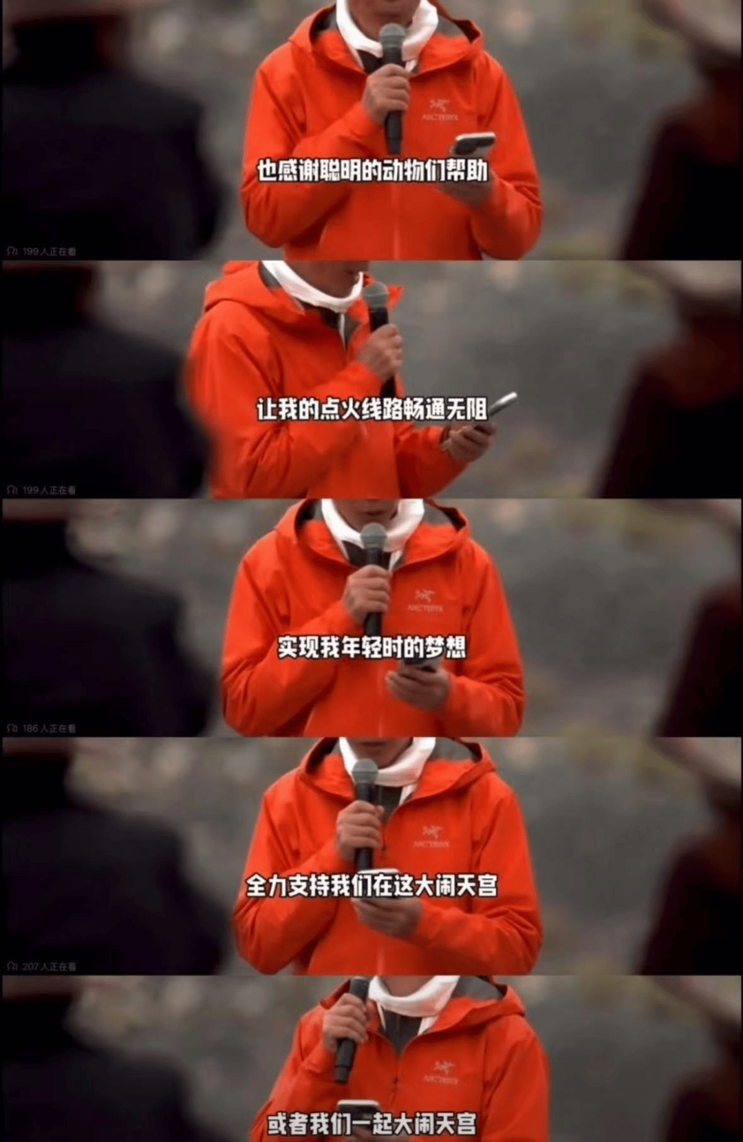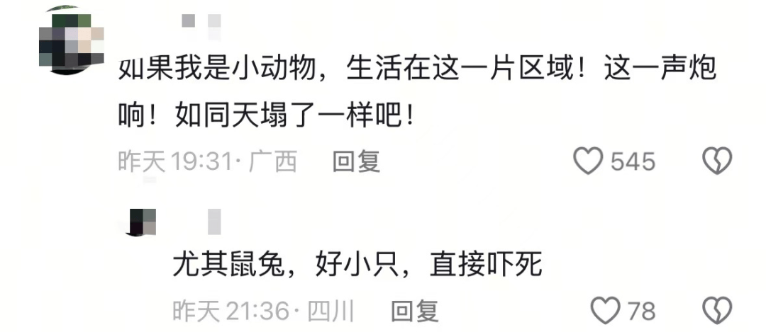 “我们用的生物可降解环保材料,我们提前引导了动物离开,我们结束燃放后会清理修复植被的……”