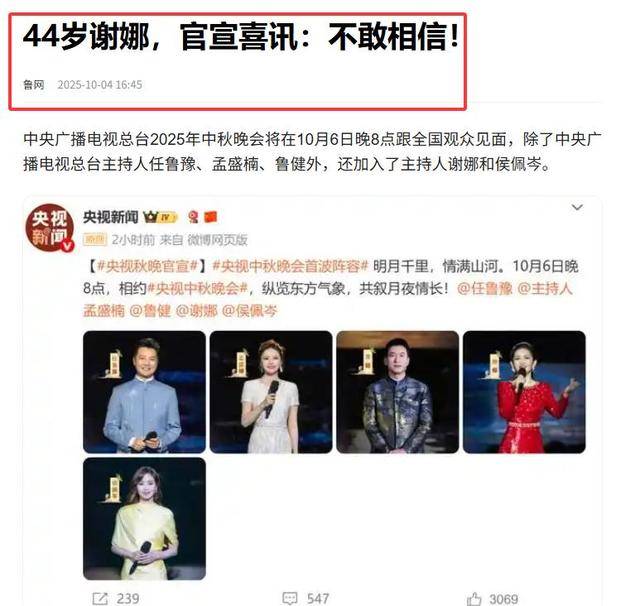 即便如此,谢娜的主持事业依旧顺风顺水,综艺邀约排到半年后,甚至今年央视中秋晚会的主持人都是她。