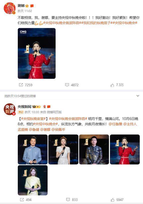 “不敢相信,我,谢娜,要主持央视中秋晚会啦!希望你们给我力量!”