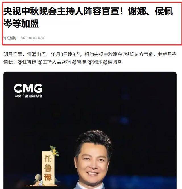 10 月 4 日,央视正式公布 2025 年中秋晚会主持团,和往年惯例的 4 人阵容不同,今年新增到 5 人。