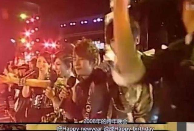 更早的2008年湖南卫视跨年晚会上,倒计时结束后她冲着镜头大声喊“Happy Birthday”。