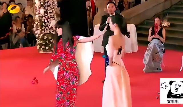 在《我们来了》的走秀环节,为了抢镜头,她突然伸手挡在奚梦瑶脸前,动作幅度大得像要扇耳光。