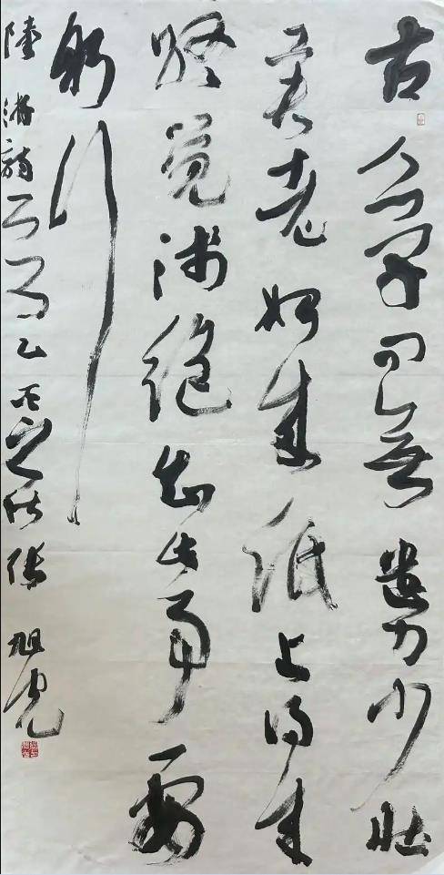 陈加林先生的书法厚、润、朴、茂,烂漫天真,简单至极,又深邃至极,蕴涵着无穷的可能性。其草书,很奔放,又很雅致。有如惊涛拍卷,风起云涌,潇洒流露处,妙趣时生,十分耐人寻味,体现了加林深厚的艺术功底和独到的悟性与天分。
