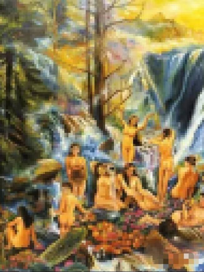 在《森林曙光》中,女性的胴体与山川河流的轮廓交融,肌理化为大地,曲线成为溪流,一种东方特有的、含蓄而磅礴的生命力喷薄欲出。