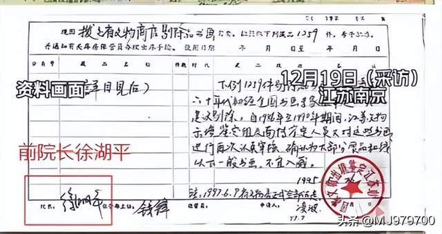 并且1997年的拨交文件上明明白白写着时任院长徐湖平的签字。