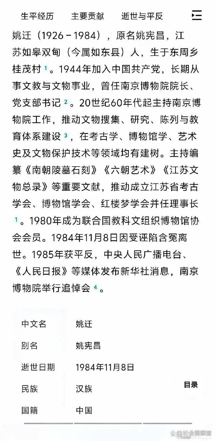 值得一提的是,姚迁在生前曾经撰写过回忆录,其中详细讲述了自己的一生,以及自己在南京博物院工作期间的点点滴滴。