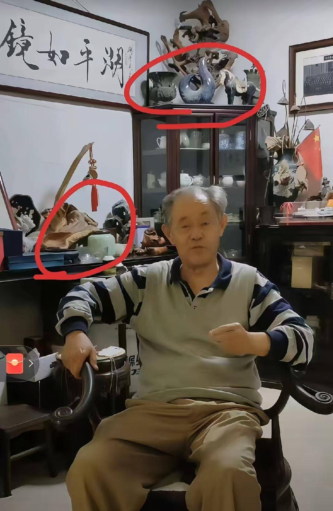 反正他就倚老卖老了。他还说他不懂文物鉴定,但是,网友看到他身后的文玩古董,都是价值不菲的东西,他本人坐的椅子是黄花梨的。他身后的柜子上摆放着唐三彩骆驼,旁边还有宋代钧窑,满屋子红木家具,就差把博物馆搬到自己家里了,这样的人,竟然说不懂鉴定。