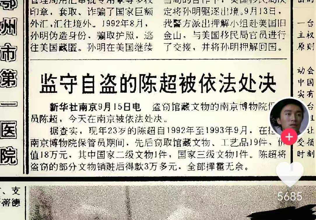 还有南京博物院监守自盗的陈超,也被依法处决了,这是九十年代的事情。也就是说,南京博物院的珍贵文物,被偷出来,运作出来,都是很平常见到事情。都是代代相传的美德了,所以,在徐湖平看来,就算是有他的签名,他也不认为自己参与了,一副高枕无忧,天不怕地不怕的样子。