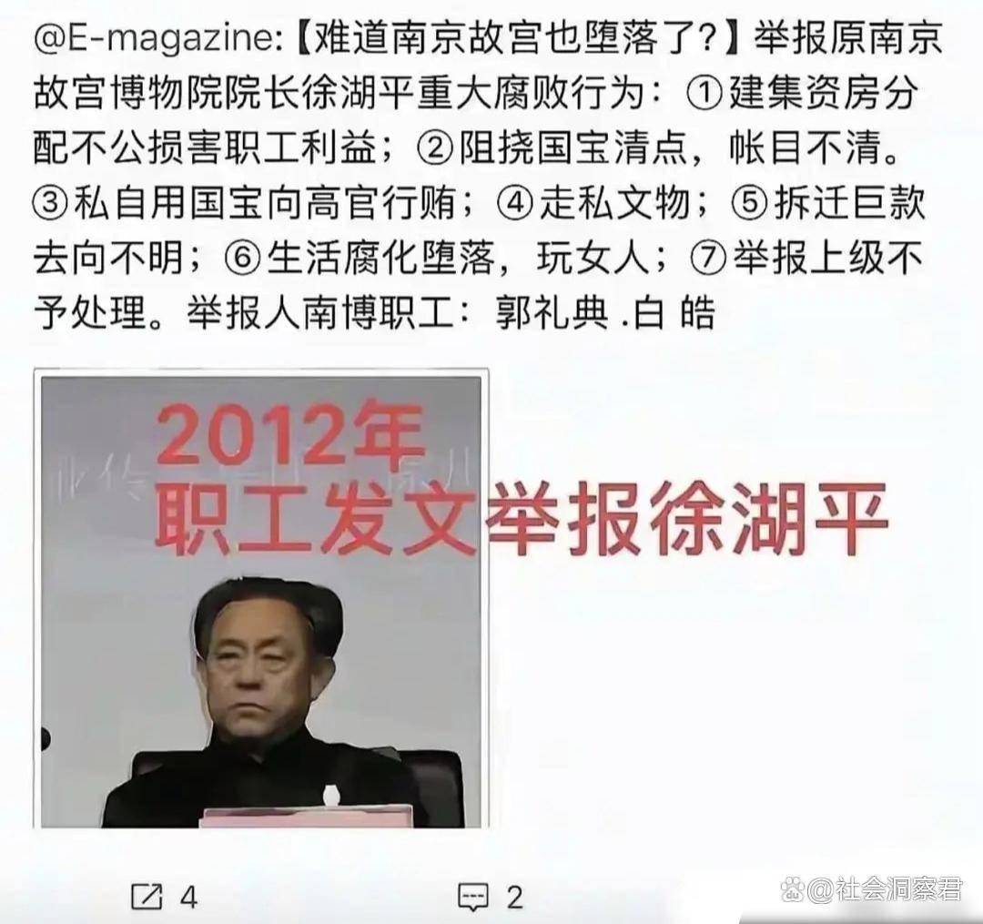 举报称,当时时任院长徐湖平偷偷撬开故宫南迁2200件文物,当自家的东西一样,又送,又卖,还走私!