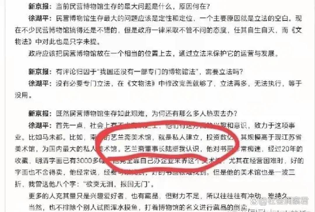 值得一提的是,有网友扒出,徐湖平多年前接受新京报采访时,自我暴露了他和艺兰斋董事长陆挺之间的关系,就是故交。