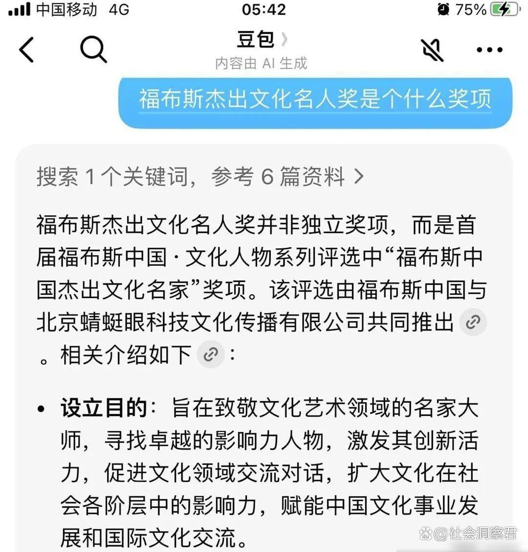 经过查询,福布斯杰出文化名人奖并非独立奖项,而是首届福布斯中国·文化人物系列评选中“福布斯中国杰出文化名家”奖项。该评选由福布斯中国与北京蜻蜓眼科技文化传播有限公司共同推出。