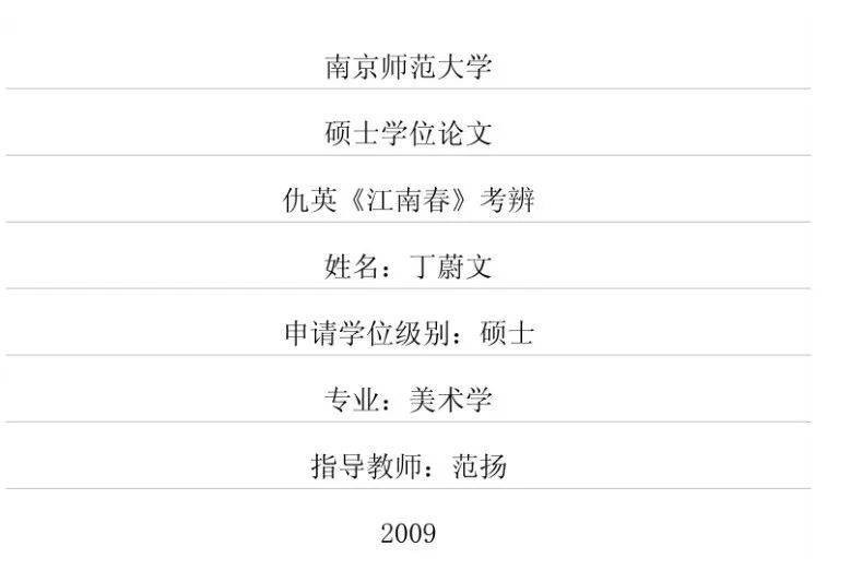 众所周知,我比较喜欢用能查得到的公开资料来说明问题,并不喜欢揣测。周四晚上,朋友说藏家陆挺已经离世,“死无对证了”。我的想法是,总有人知道的,比如陆挺的夫人。只是当时没有实证证实丁蔚文和陆挺是夫妻关系,所以上一篇的截屏是遮去真实姓名的。直至周末略有空,读完丁蔚文长达163页的硕士学位论文《仇英<江南春>考辨》,才确认了几件事: