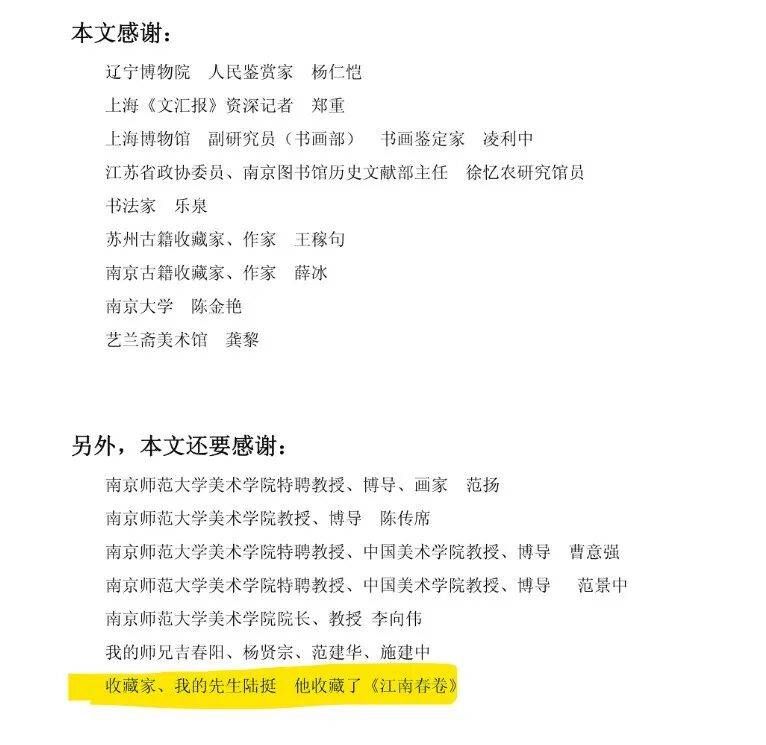 也有人认为,陆挺收藏《江南春》图卷的时候全凭眼光(比南博鉴定专家牛)。矛盾在于,不管是艺兰斋对媒体的宣称,还是丁蔚文的论文,所表达的藏品流转链路颇有矛盾之处。
