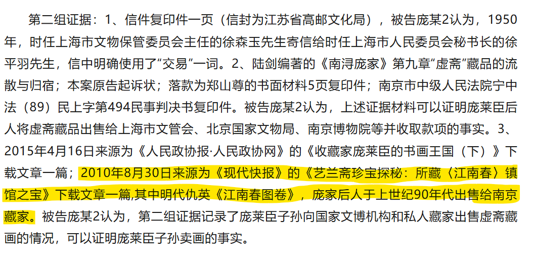 理顺了逻辑链条,应该是这样:丁蔚文作为美术学的研究者,作为《江南春》图卷的研究者,既然认可庞元济的收藏眼光,认可《江南春》图卷后为庞增和所藏,而庞增和将该古画捐赠给了南博,又说该图卷得自庞家后人,从庞增和到艺兰斋的链条,目前已知只经过了南博。答案呼之欲出。