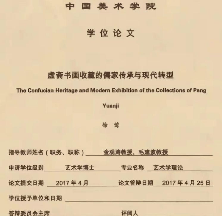 按常理说,身份造假这种事,放在哪个圈子都是致命污点,轻则名声扫地,重则前途尽毁。可徐莺偏不,她的人生像是开了挂。身份被揭穿没几个月,这个学了半辈子生物病毒的硕士,居然摇身一变,成了中国美术学院的委培博士,研究课题还精准踩中 “20 世纪书画收藏・以庞莱臣为例”。