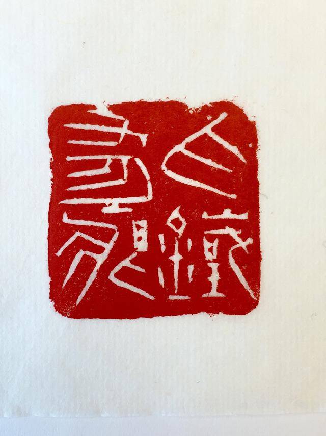 比如,一方《逆行者》印,外面的边框是朝下的箭头,里面有一个白文的边框,是朝上的箭头,形象揭示了“逆行者”的本意。