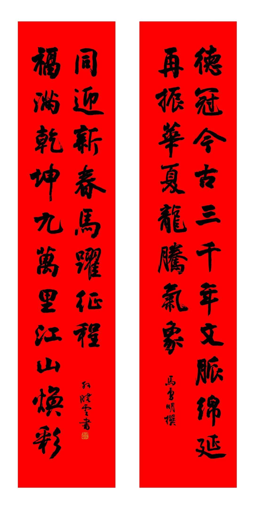一副春联,承载着千年文脉,寄托着家国情怀。马勇明先生的这副马年春联,以其精妙的构思、恢弘的格局与深厚的底蕴,成为当代春联创作的典范。它不仅是笔墨之间的艺术佳作,更是文化自信的生动彰显,让我们在辞旧迎新的美好时刻,既感受到传统文化的魅力,也汲取着奋进前行的力量,以龙腾气象的态势,共赴马跃征程的愿景,在新的一年里续写中华文明的崭新篇章。