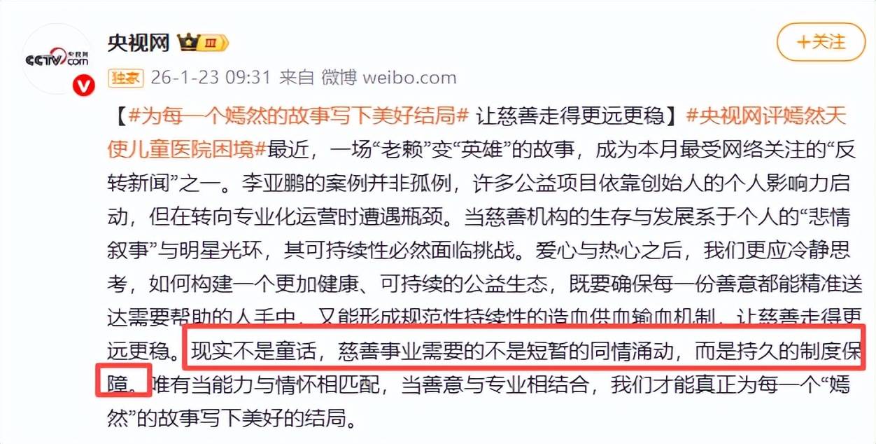 “现实不是童话,慈善事业需要的不是短暂的同情涌动,而是持久的制度保障。”