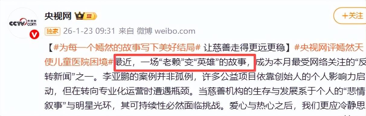 1月23日,央视官方也发文,细心改变对他的称呼:从“老赖”到“英雄”。