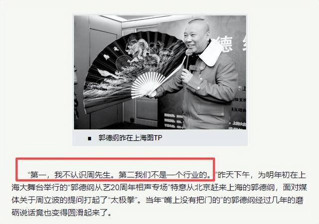 这话更绝。你周立波是海派清口,我郭德纲是相声,八竿子打不着,我凭什么要跟你比?轻描淡写,四两拨千斤。