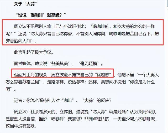 周立波当年用“咖啡”和“大蒜”划了一条线。举报者今天用“上海人只喝咖啡不吃蒜”划了一条线。