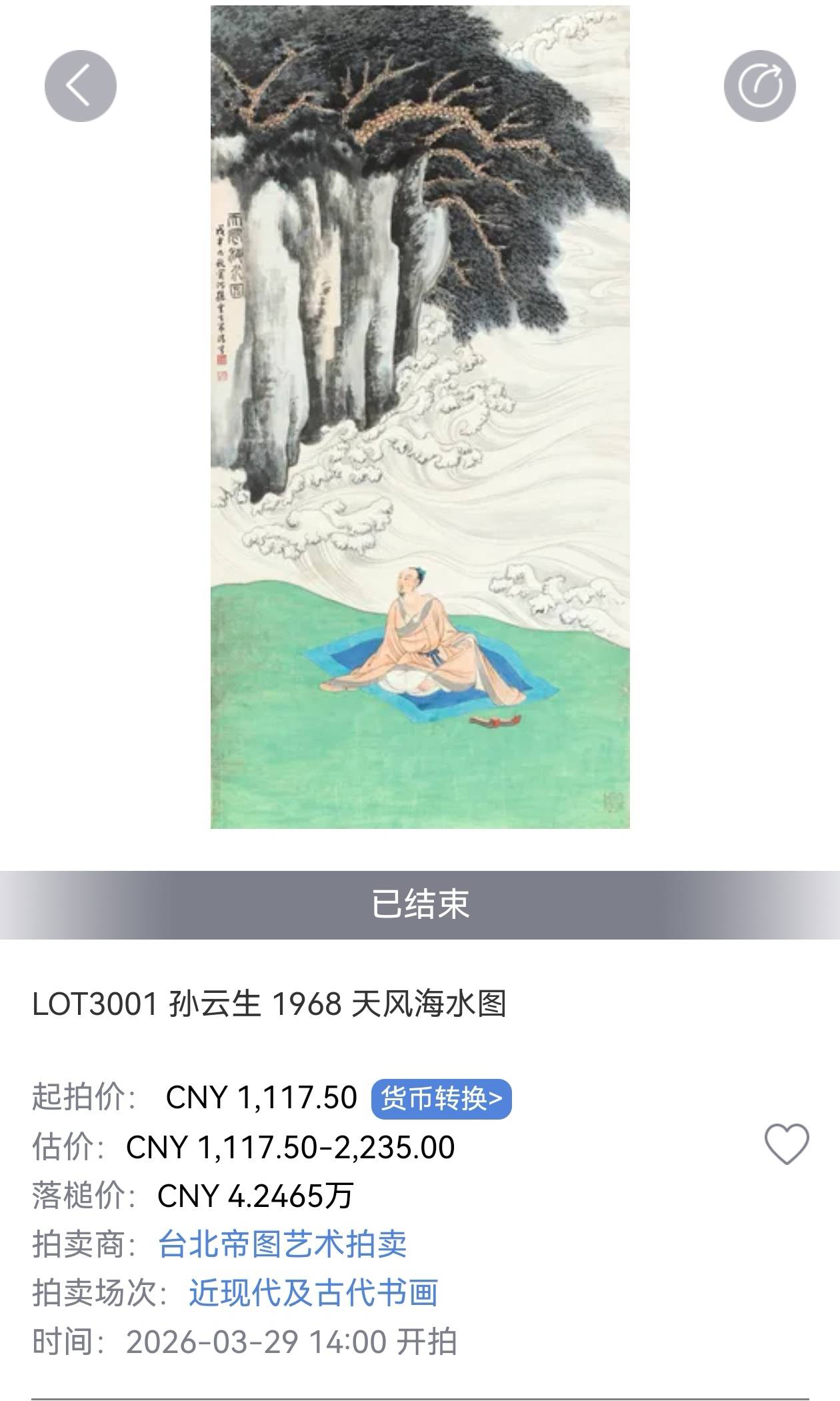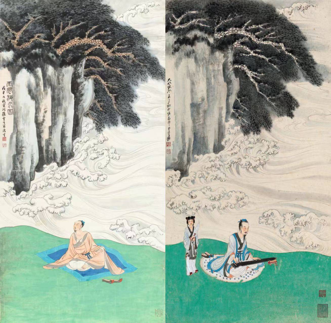 孙云生《天风海水》加佣金五万成交,张大千同题材作品两千三百万,画面相似,买不起张大千可以买孙云生“平替”吗?