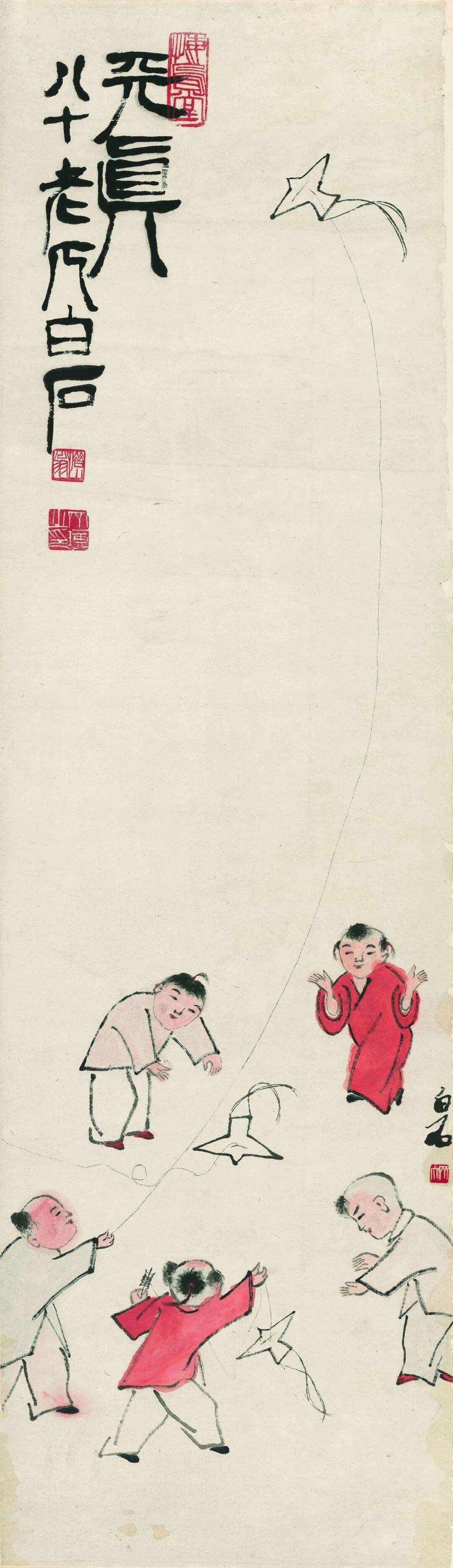 齐白石 五童纸鸢图