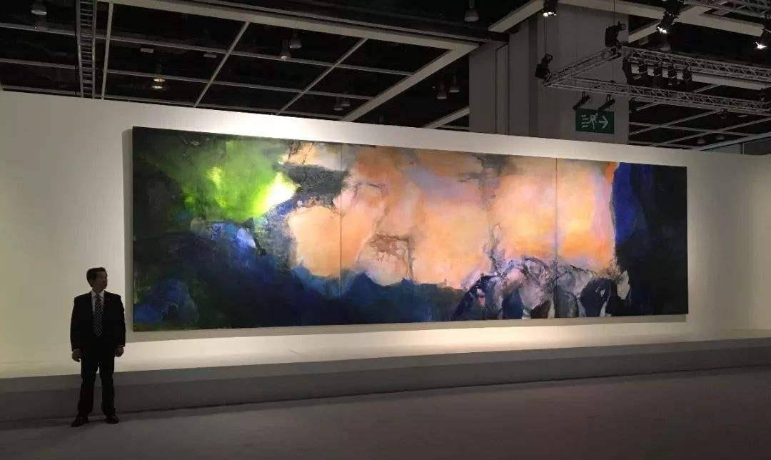 另一幅作品《1985年6月至10月》,是赵无极于1985年创作的油画。这幅作品的尺寸异常庞大,长达10米,高度为2.8米。最有意思的是,这幅画并没有名字,只是以时间命名——这体现了赵无极作为顶级艺术家的豪横风范。它在2018年香港苏富比的现代与当代艺术晚间拍卖专场上,最终拍出了4.5亿港元,连同佣金,总价达到了5.1亿港元,成为赵无极迄今为止拍卖价格最高的画作。