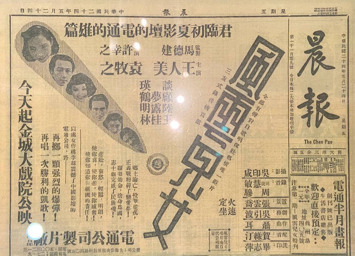 1935年5月24日,《晨报》刊载《风云儿女》的公映广告
