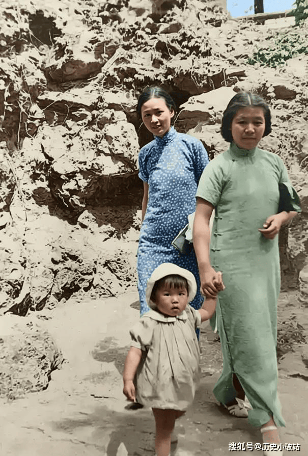 1936年,北平,照片中的三人是至亲:林徽因(梁思成的妻子)、梁思庄(梁思成的妹妹,知名图书馆学家),以及吴荔明(梁思庄的长女,时年约2岁,是林徽因的外甥女)。此次游园是姑嫂二人借闲暇,带着幼童在北平郊野公园的家庭小聚。