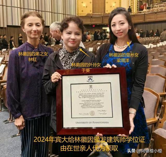 2024年,林徽因的外孙女于葵站在宾夕法尼亚大学的毕业典礼上,为素未谋面的外婆领取了一张迟到了百年的建筑学学士学位证。