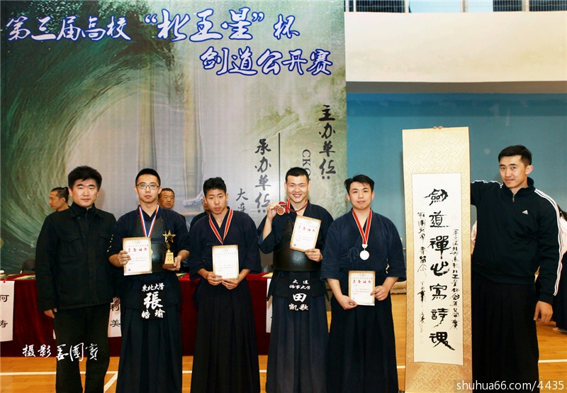 2017年11月19日9时30分,「第三届高校'北王星杯'剑道公开赛」在大连海事大学正式开幕。本次公开赛由「国际剑联ckou中国事务部」、「大连市高校体育委员会」主办,「大连海事大学」承办,是为配合中国教育部极力推动的文武合一的全面教育的理念,ckou开始在大学生剑道的推广和发展上给予积极的支持和指导,专门以在校大学生和剑道爱好者为对象而举办的剑道比赛。参加本次公开赛的有:大连海事大学、东北大学、大连海洋大学、中国医科大学、首都师范大学、中国刑警学院、沈阳航空航天大学、冀司警院、辽宁师范大学、辽宁对外经贸学院 。「中国文化魂书画研究院」副院长 何涛 先生作为嘉宾出席了公开赛,并为公开赛捐赠墨宝《剑啸九州定乾坤》《秋空一剑横霜雪》《剑道禅心写诗魂》作为奖品颁发给了三名荣获个人赛金奖的选手留作纪念。