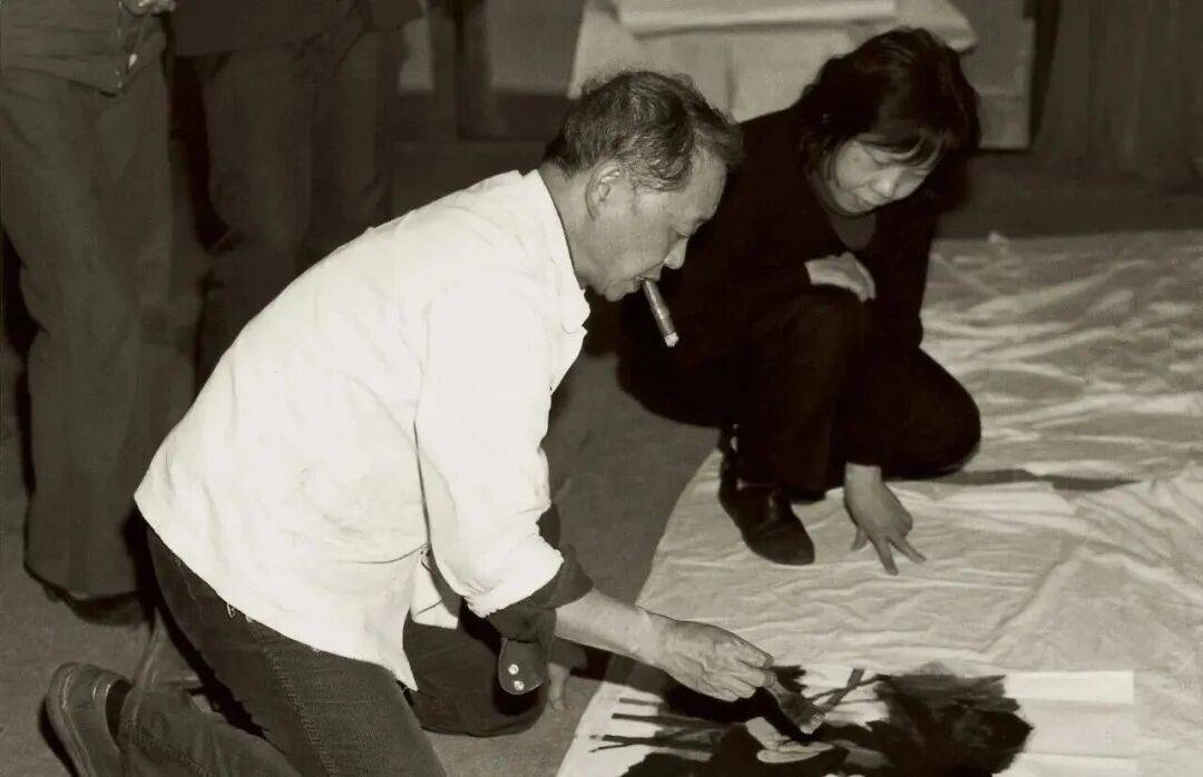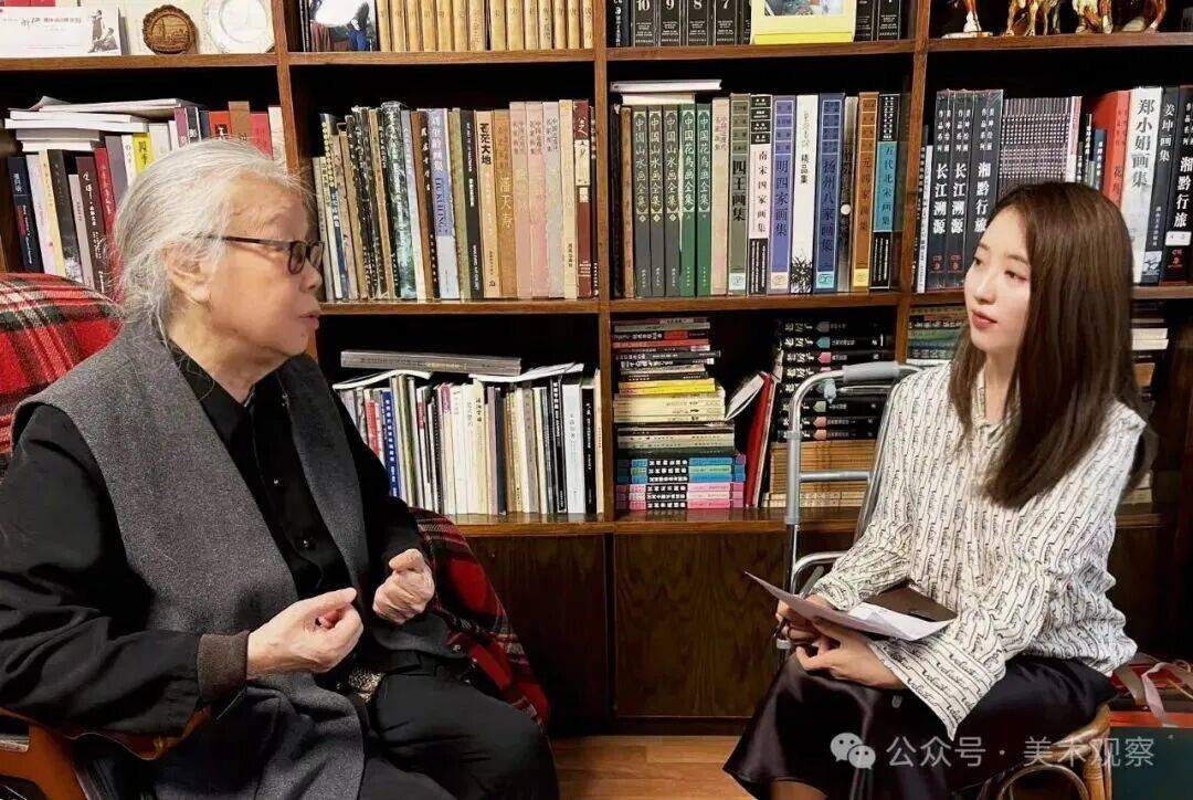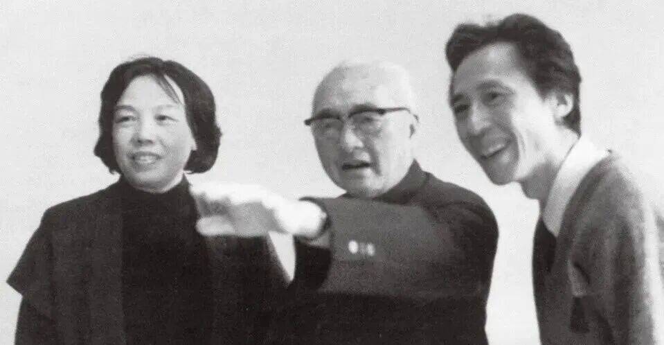 1992年,郑小娟(左)和丈夫姜坤听王朝闻谈创作